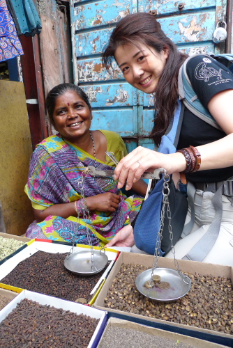 スパイスを量り売りしてるおばちゃん
