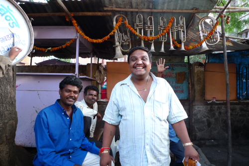 インドの結婚式では欠かせない音楽隊の陽気なボス