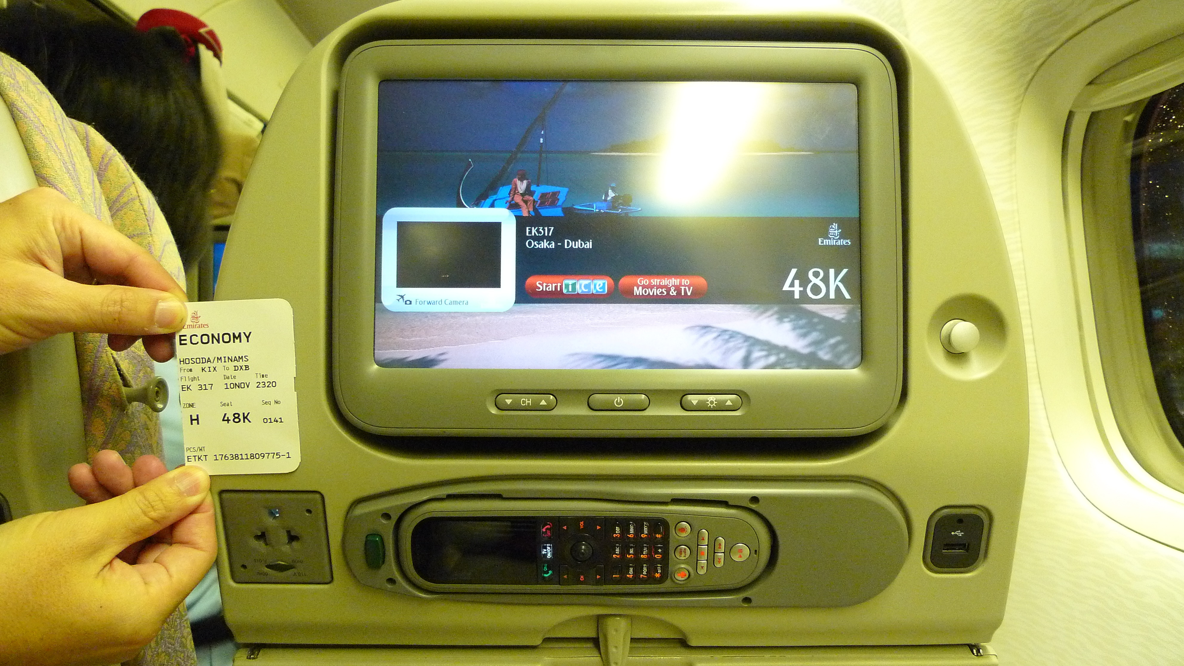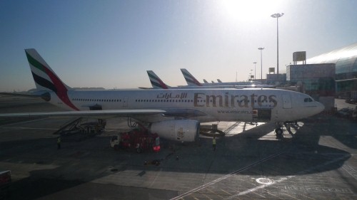 エミレーツ航空にて23:25発ドバイに向かって出発