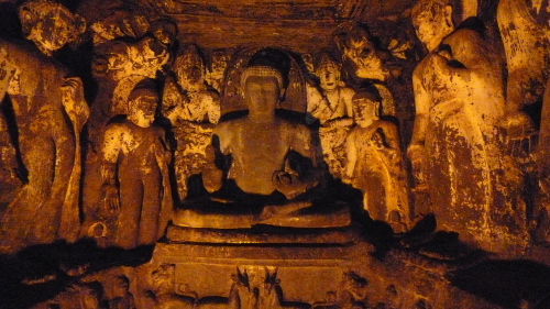 3時間たっぷりと時間を費やしたこの広いアジャンター石窟郡