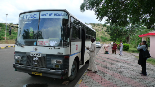 8:30、ホテルエントランスに集合してアジャンターバスツアー出発