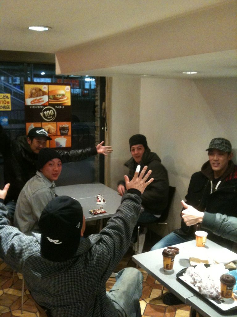 MAC de RAGGA.ども。寒いです、最近。だもんで、あったかい"現場"GO!! 向かうは『激震』~~♪で、マクドに寄ったら、いつの間にやらこんなに大人数~!!G-MAN,KAJI-YAN & friend,PARO君,SUPER SHARK,Mr.JEEN~~!!!遊びに行きましょ~~!! KA BOOOOOM!!!