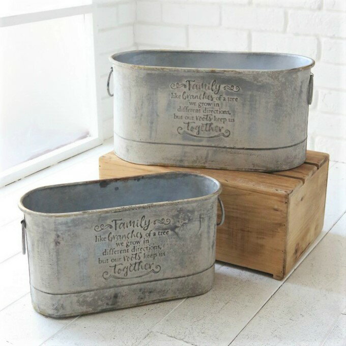 鉢はオーバル型のブリキです