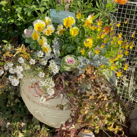 寄せ植え全体をまとめる色合わせのポイント/春を感じるビオラとリナリア