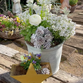 単色でまとめる冬のスノーホワイトな寄せ植え ラナンキュラス綾リッチ