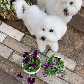 4種類のうえたオリジナルビオラでハンギング寄せ植え&子犬フィー日記