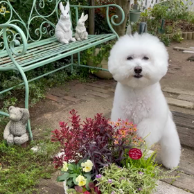 見元園芸ビオラ虹色カレンとウサギの鉢 まんまる可愛い寄せ植え作りました