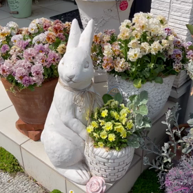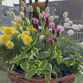 【マーガレットとラグラスとラベンダーの籠バスケット寄せ植え】