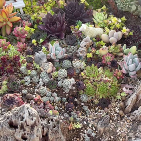 多肉の隠れ家★桂の木の裏に地植えセダムと多肉の寄せ植え作ってみた