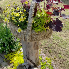 バスケット型プランターにビデンスとヒューケラの寄せ植え作ったよ