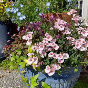 ペチュニアとロベリアのハンギングバスケット寄せ植え作ったよ