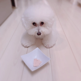 無言の圧力!上目遣いでおねだりするビション★ワンコ用の苺スイーツ