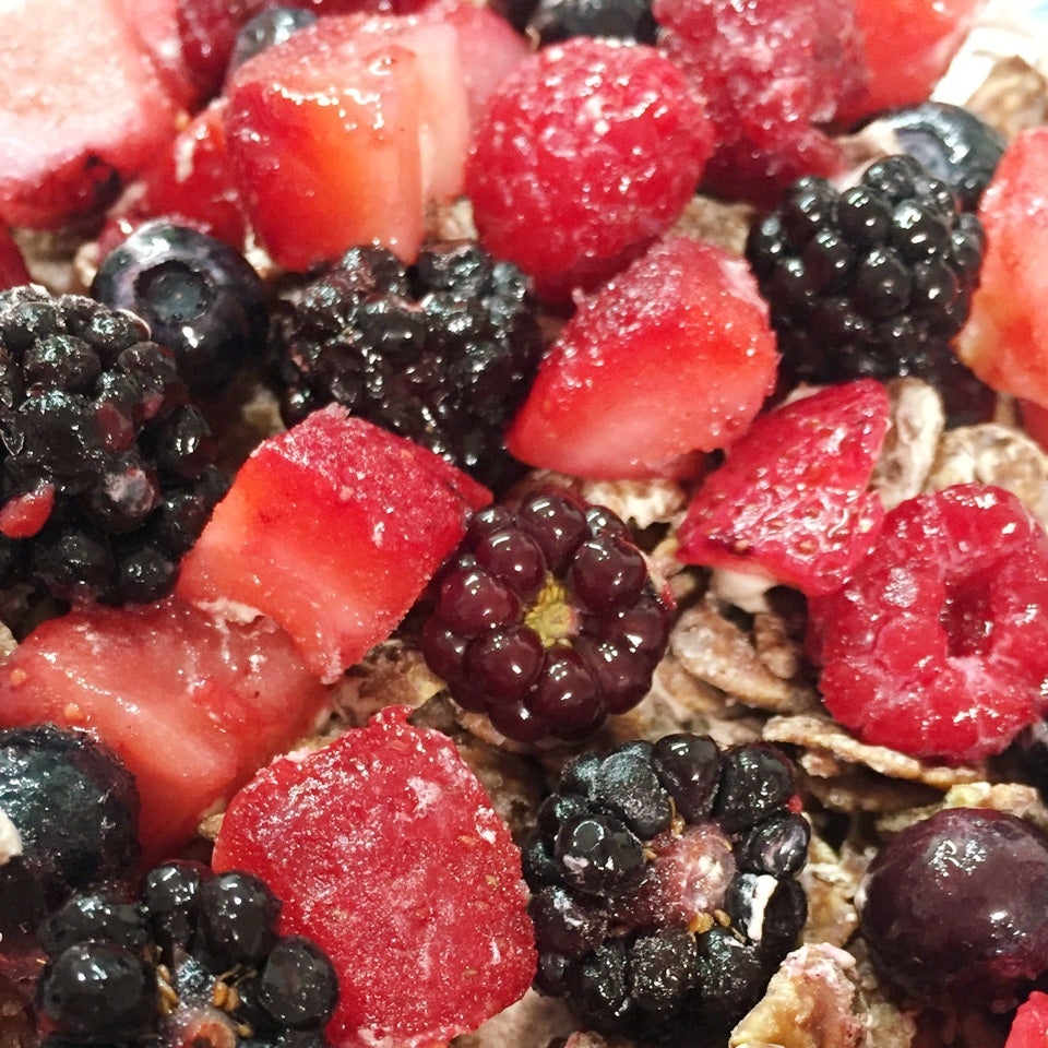 砕かずそのままのチョコレートフレークとベリーをたっぷり飾ったら