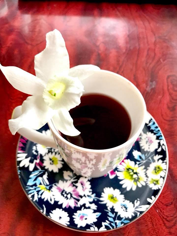 1杯目はいつものブレンドティ。。。ジャスミンとハイビスカスの香りと