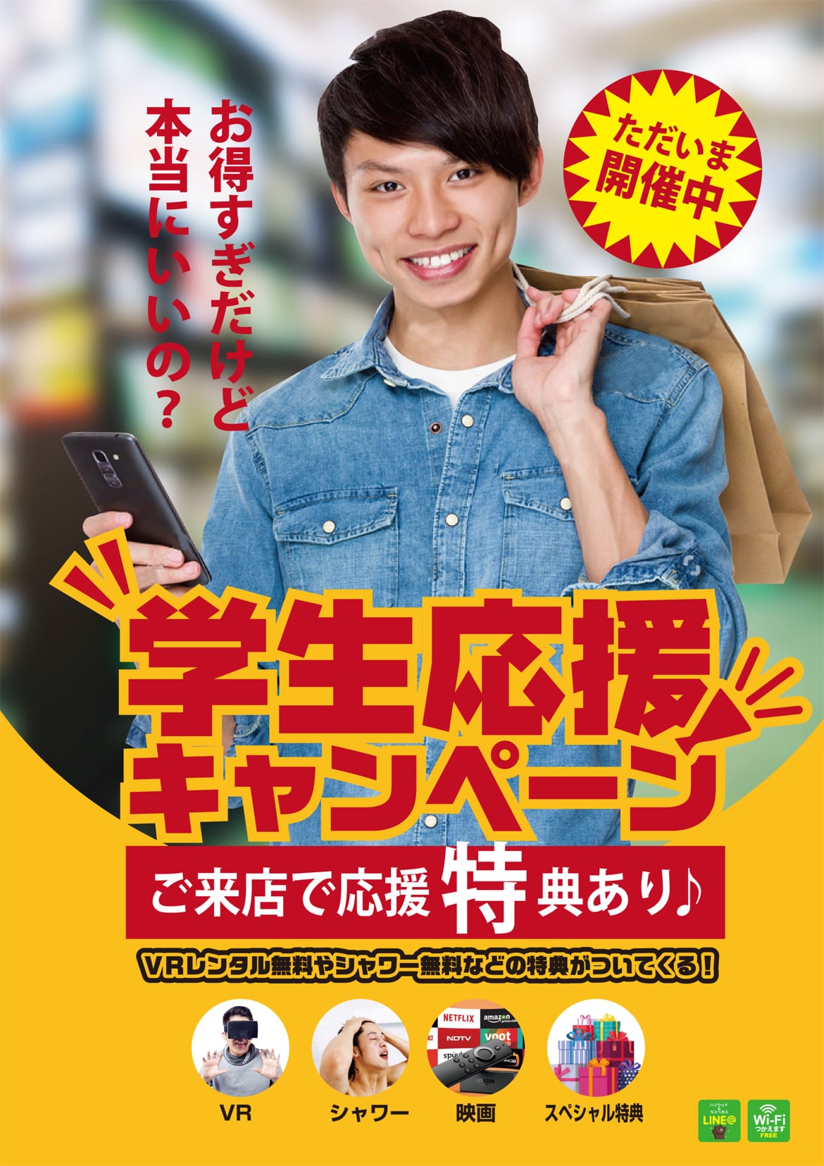 期間中、当店をご利用の学生のお客様へ特別特典のあるキャンペーンを開催しております! 広島のネットやナイトコースなら当店へ。