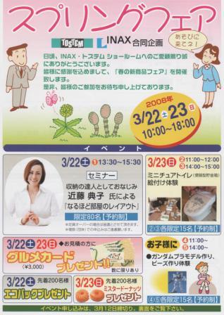 今回は、INAXとTOSTEMショールームの主催でのスプリングフェアの一イベントとして行なわれます。
