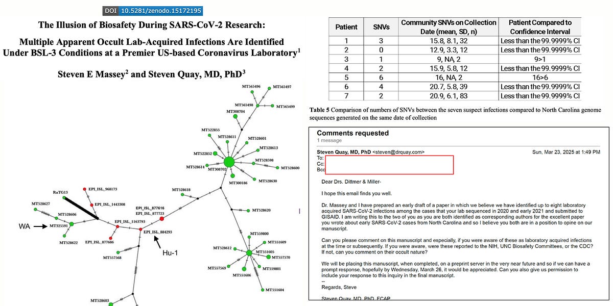 The Illusion of Biosafety During SARS-CoV-2 Research: Multiple Apparent Occult Lab-Acquired Infections Are Identified Under BSL-3 Conditions at a Premier US-based Coronavirus Laboratory1 Steven E Massey2 and Steven Quay, MD, PhD3