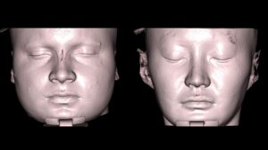 皮膚層を透明にすると、脂肪の分布や咬筋(エラの部分の筋肉)の発達具合が