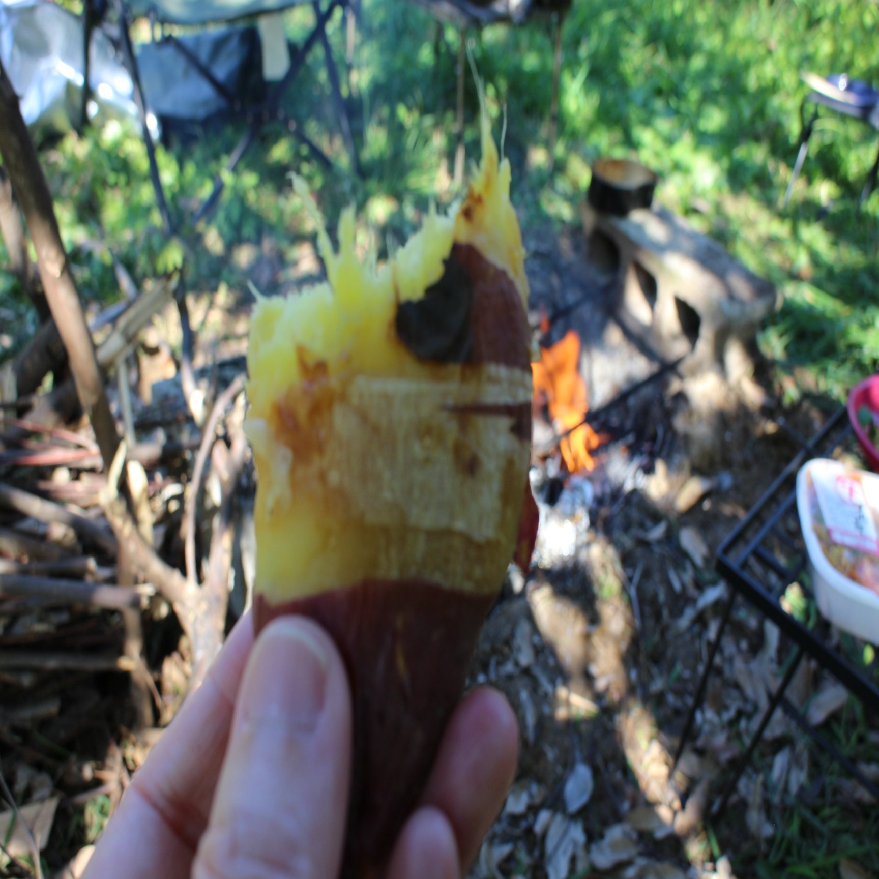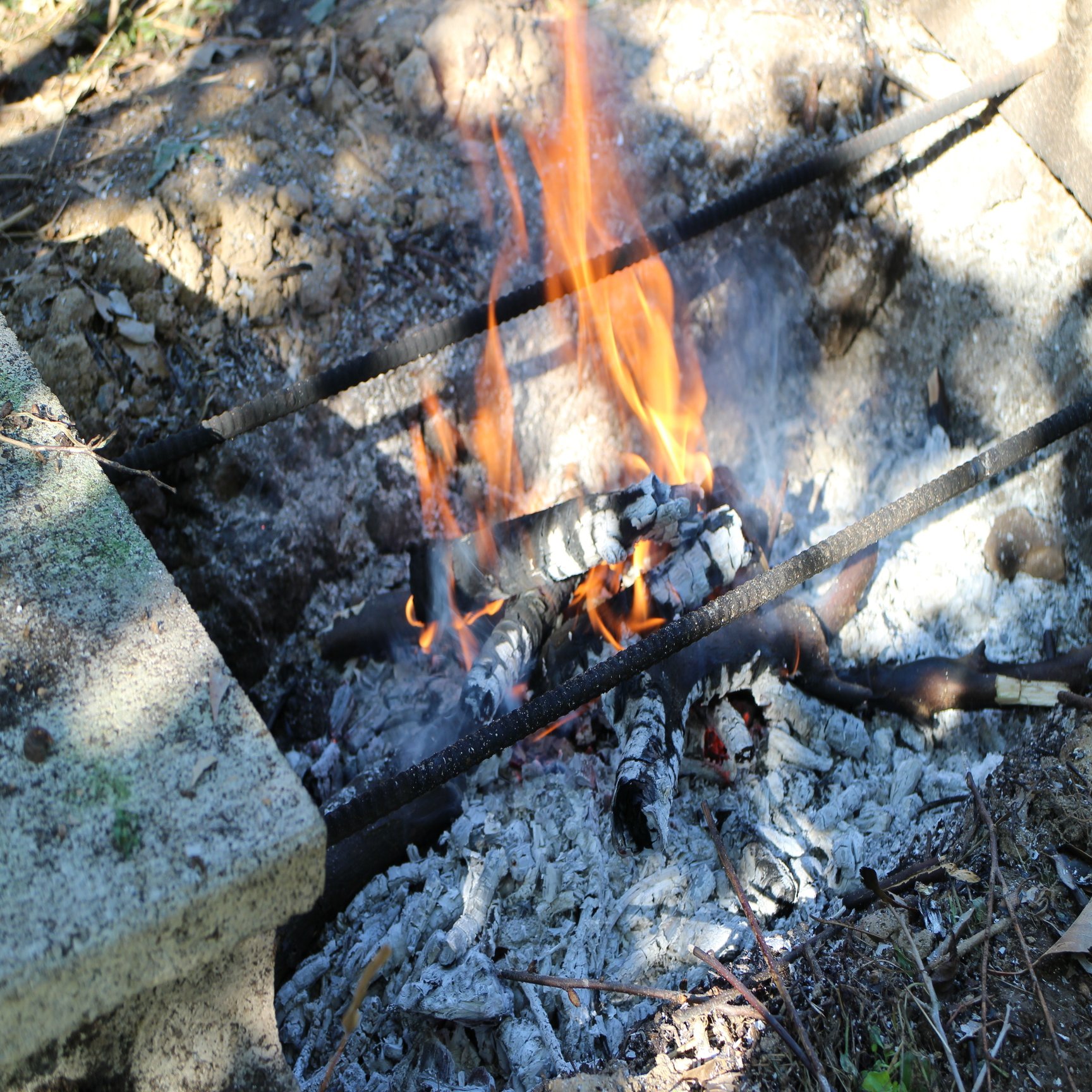 秋晴れの中、仕事場のプログラムで焚火会を開催