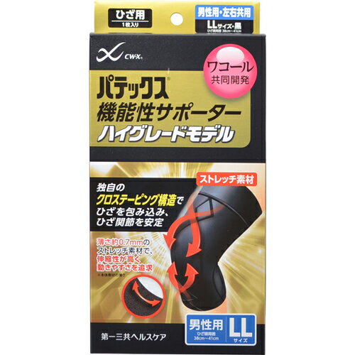 商品説明「パテックス 機能性サポーター ハイグレードモデル ひざ用 男性用 LL 黒」は、ひざを包み込み、ひざ関節を安定させるサポーター 膝用(ひざ用)です。伸縮性が高く動きやすい...