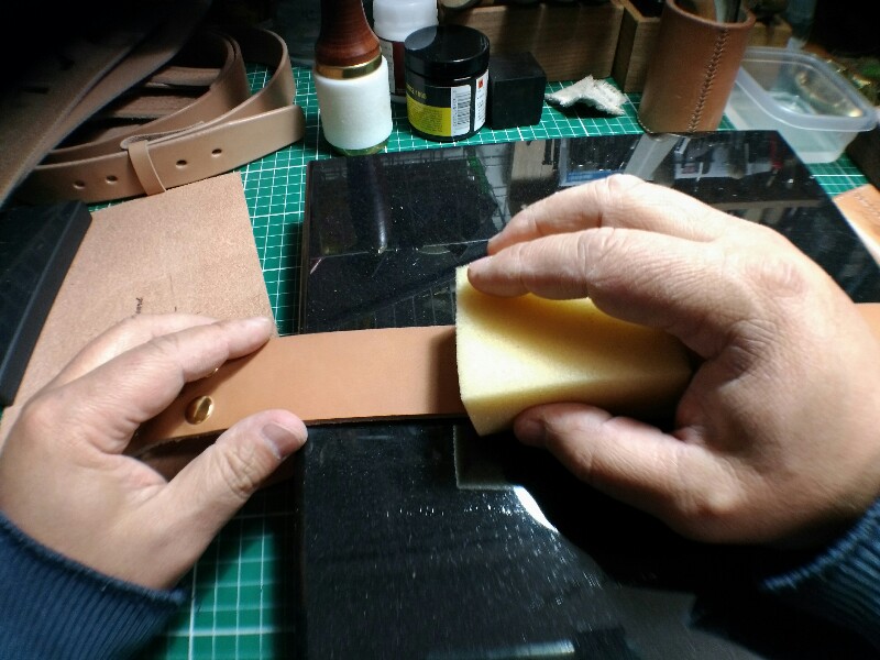 まずは軽く湿らせます