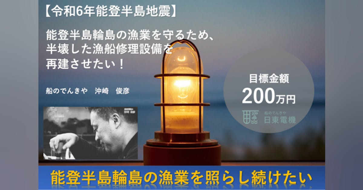 「能登半島輪島の漁業を照らし続けたい!輪島の漁業再建に向けて」クラウドファンディングを立ち上げられています。