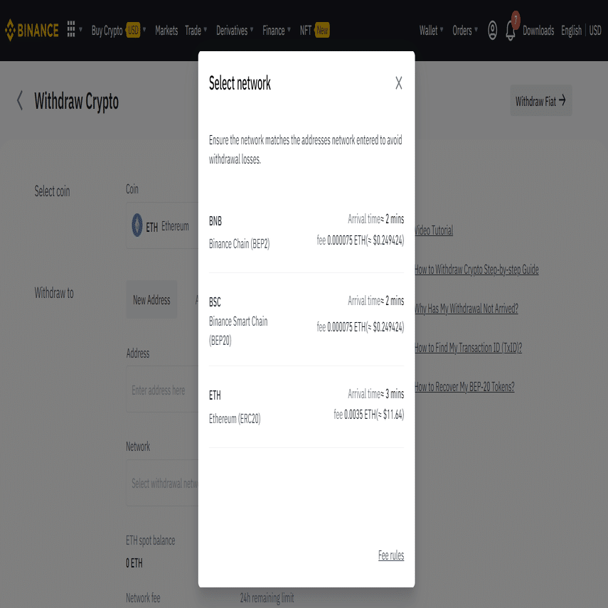 Binanceから暗号資産を引き出す際は、いくつかのネットワークオプションが提示されます。