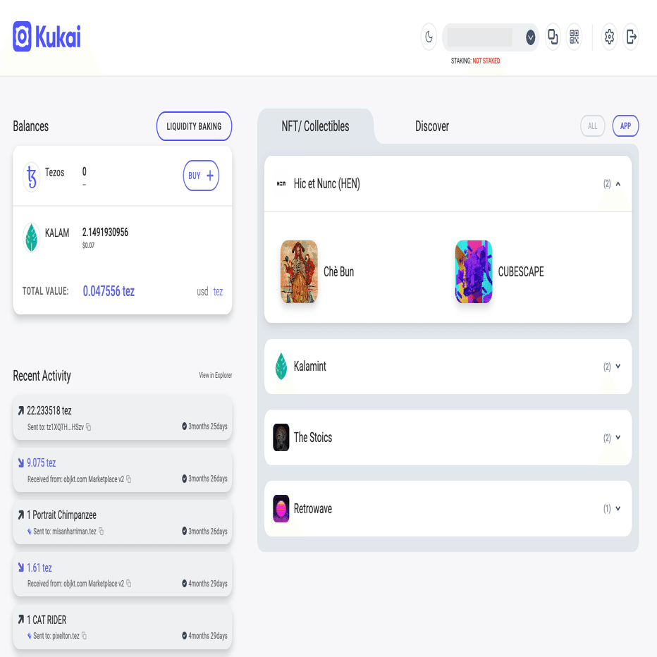 以上です。これで、LedgerデバイスがKukaiに接続されました。Tezosの残高とNFTコレクションがダッシュボードに表示されるはずです。