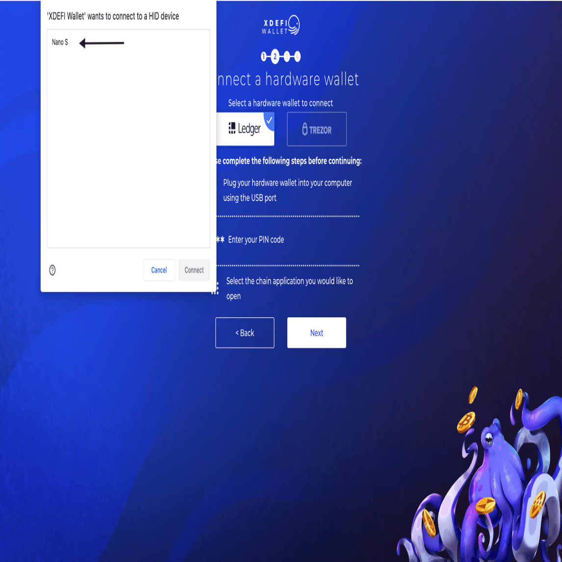 ヒント:すでにXDEFI Walletをインストールしている場合は、上記の手順をスキップして、ウォレットをLedgerデバイスに直接接続してください。