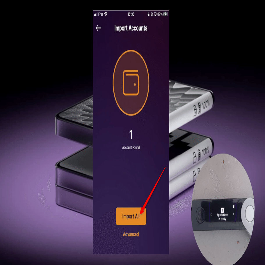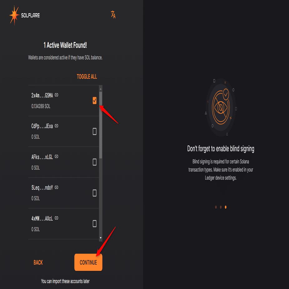 Solflareがデバイスの分析を終了したら、「Import All」を選択してアカウントをインポートする。