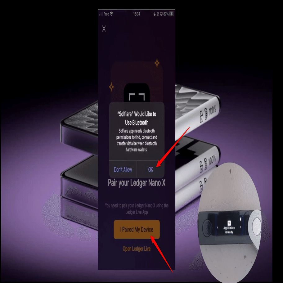 指示が表示されたら、SolflareにBluetoothの使用を許可し、「I Paired My Device」を選択する。