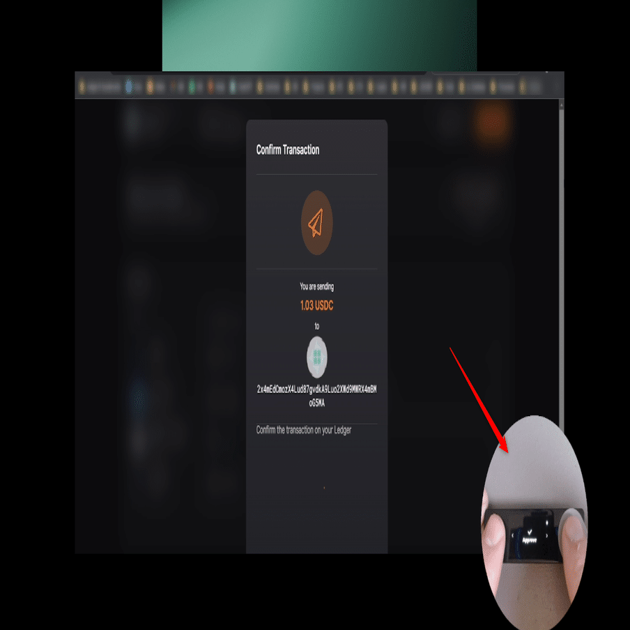 Ledgerのボタンを使用して、トランザクションを確認します。すべてに問題がなければ、Approveに移動し、両方のボタンを同時に押してトランザクションに署名します。