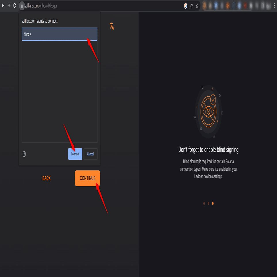 ステップ 1 - LedgerデバイスをSolflareに接続する
