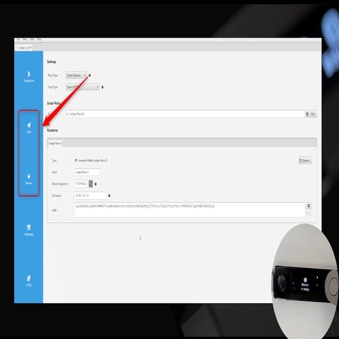 「Send(送信)」 または「Receive(受信)」タブに移動し、アカウントのBTC資金を管理する。