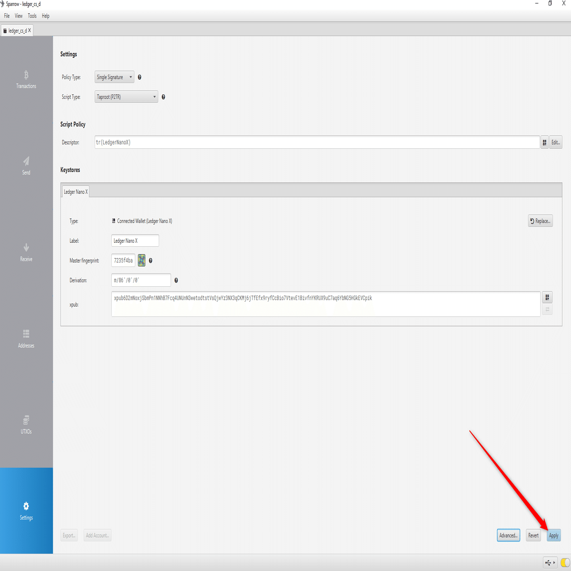 LedgerをSparrowに接続する