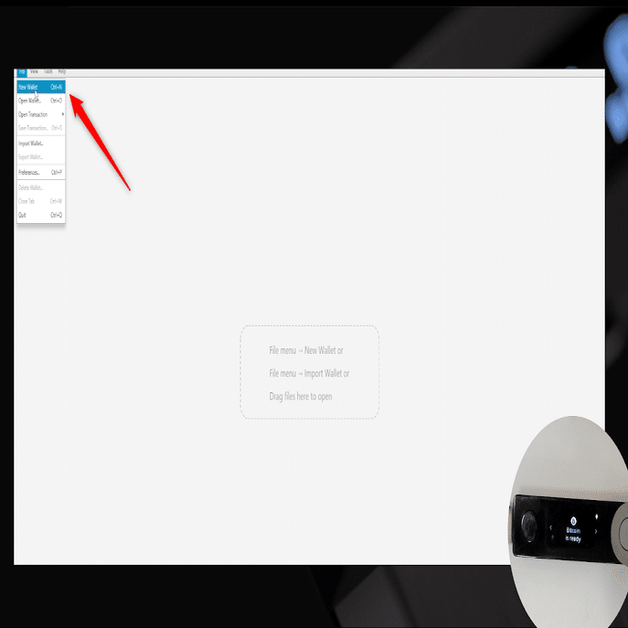 「File(ファイル)」 > 「New Wallet(新規ウォレット)」を選択する。