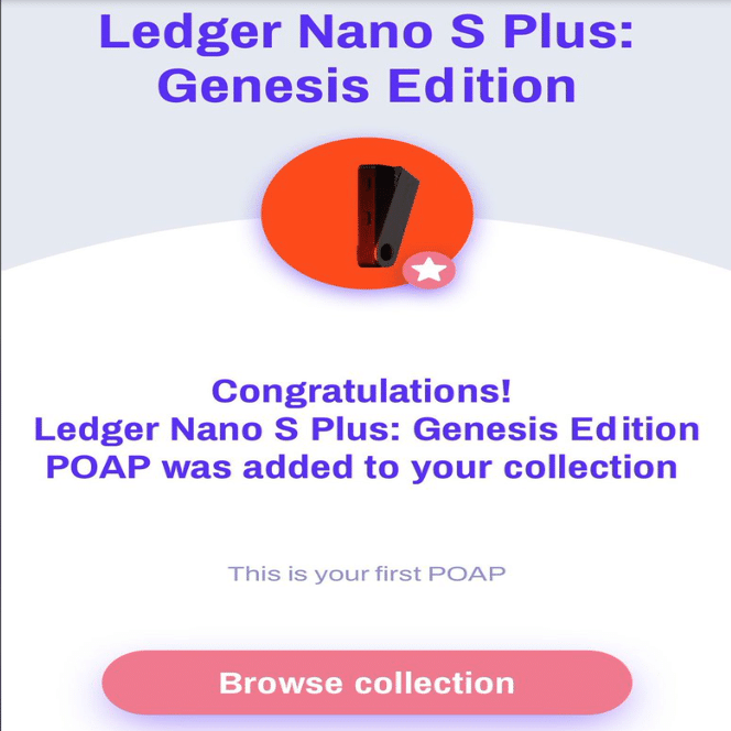 Ledger Nano S Plus Genesis限定版のPOAPが、コレクションに追加されました。