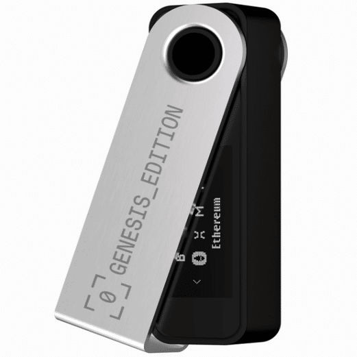 Ledger Nano S Plus Genesisは、限定版のNano S Plusです。カスタム刻印入りメタル保護カバーと、限定NFTが手に入るPOAPカードがセットとして付属しています。