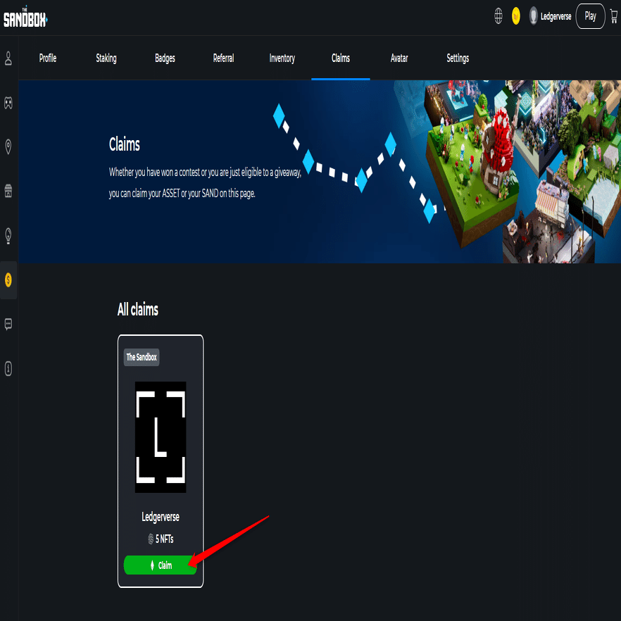 My Claimsに移動し、Ledgerverse NFTを見つける。