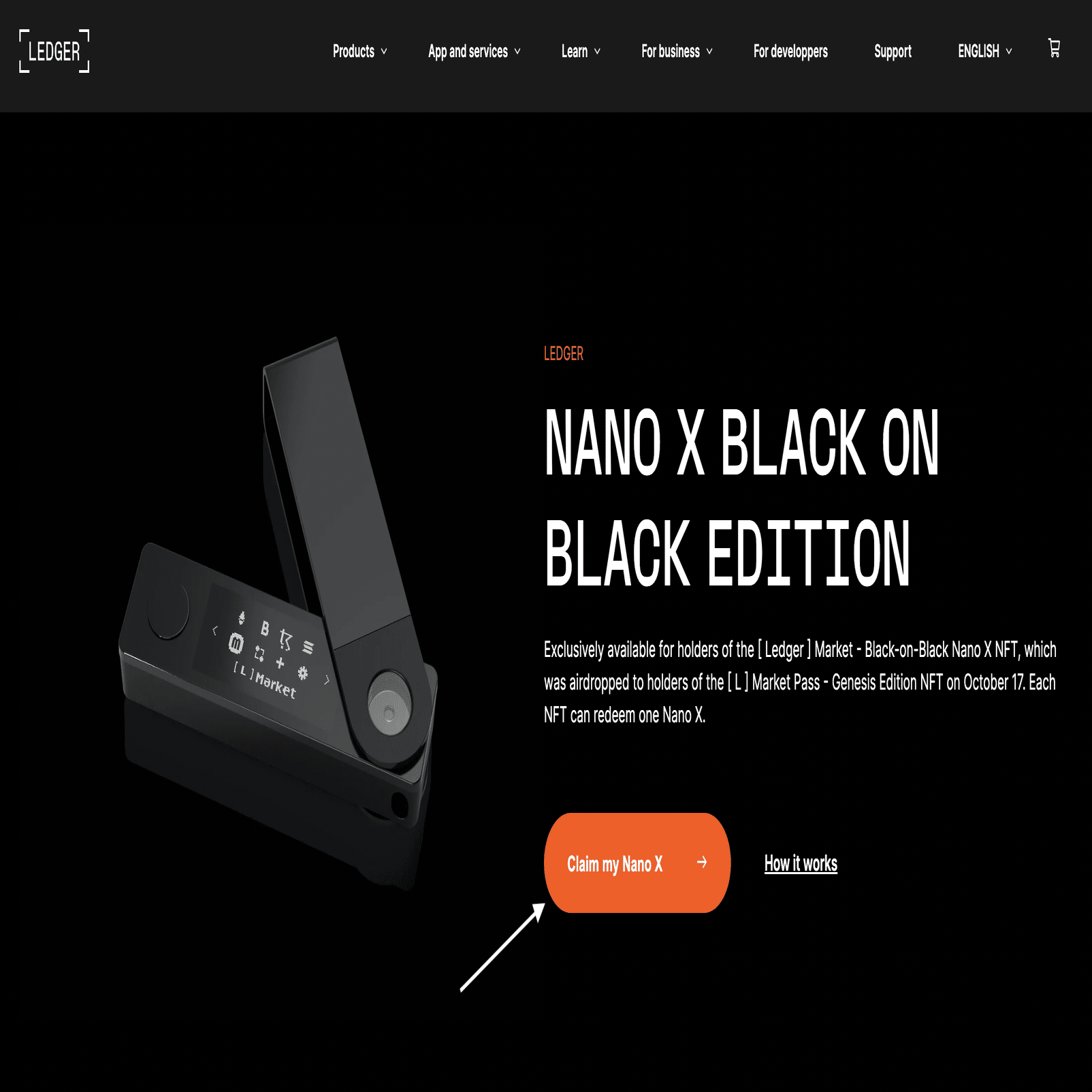 引き換えトークンごとに、Black-on-Black Nano Xを1つ取得できます。