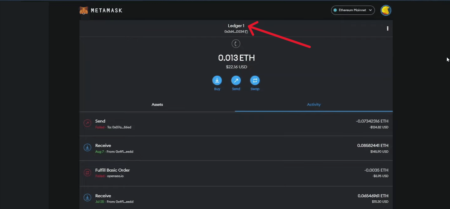 あなたのLedgerが表示されます: 取引内容を確認します。