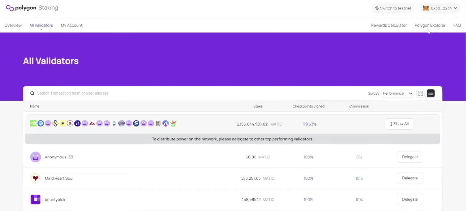 アプリにAll Validators(すべてのバリデーター)のリストが表示されます。