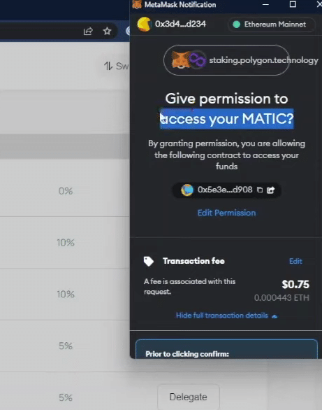 MetaMaskが開くのを待ちます。完了したら、Ledgerデバイスでトランザクションを確認し、問題がなければ承認します。
