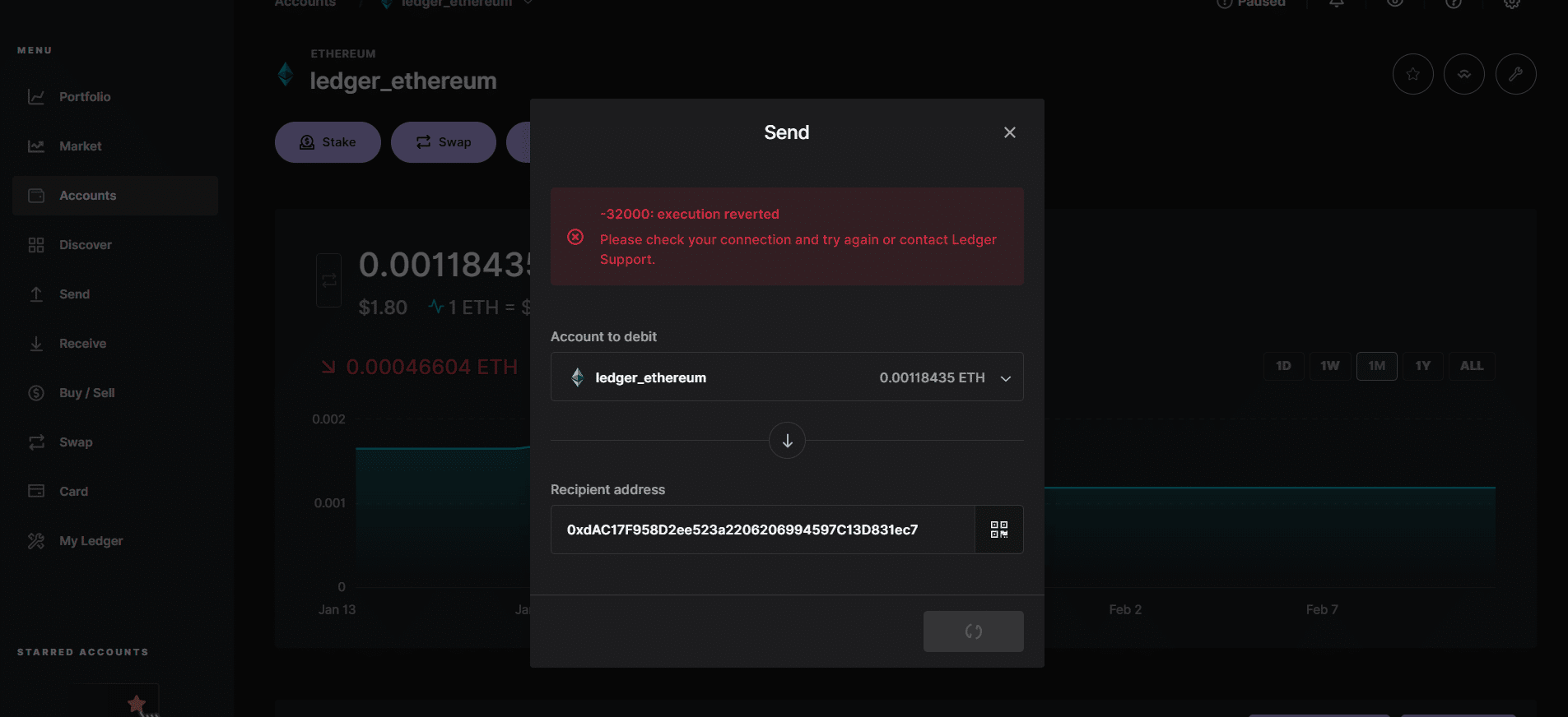 レジャーによると;このエラーは、2.54.0 アップデートで解決されました。