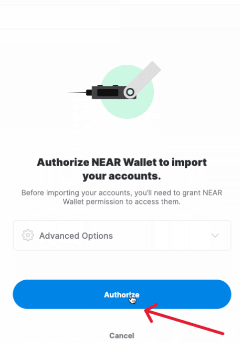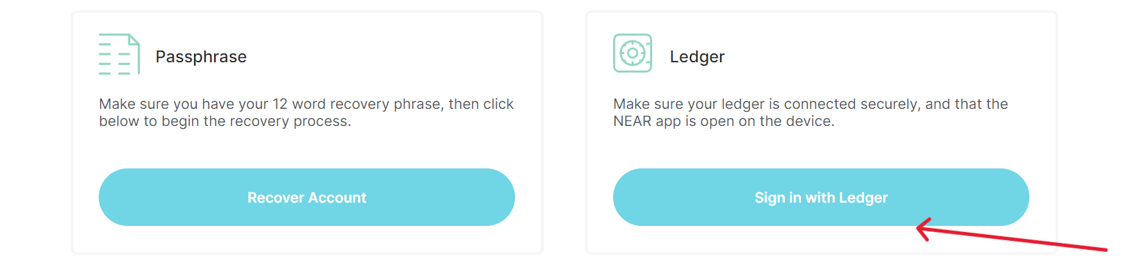 Ledger デバイスと認証ステータスで Near アプリを接続して開きます。
