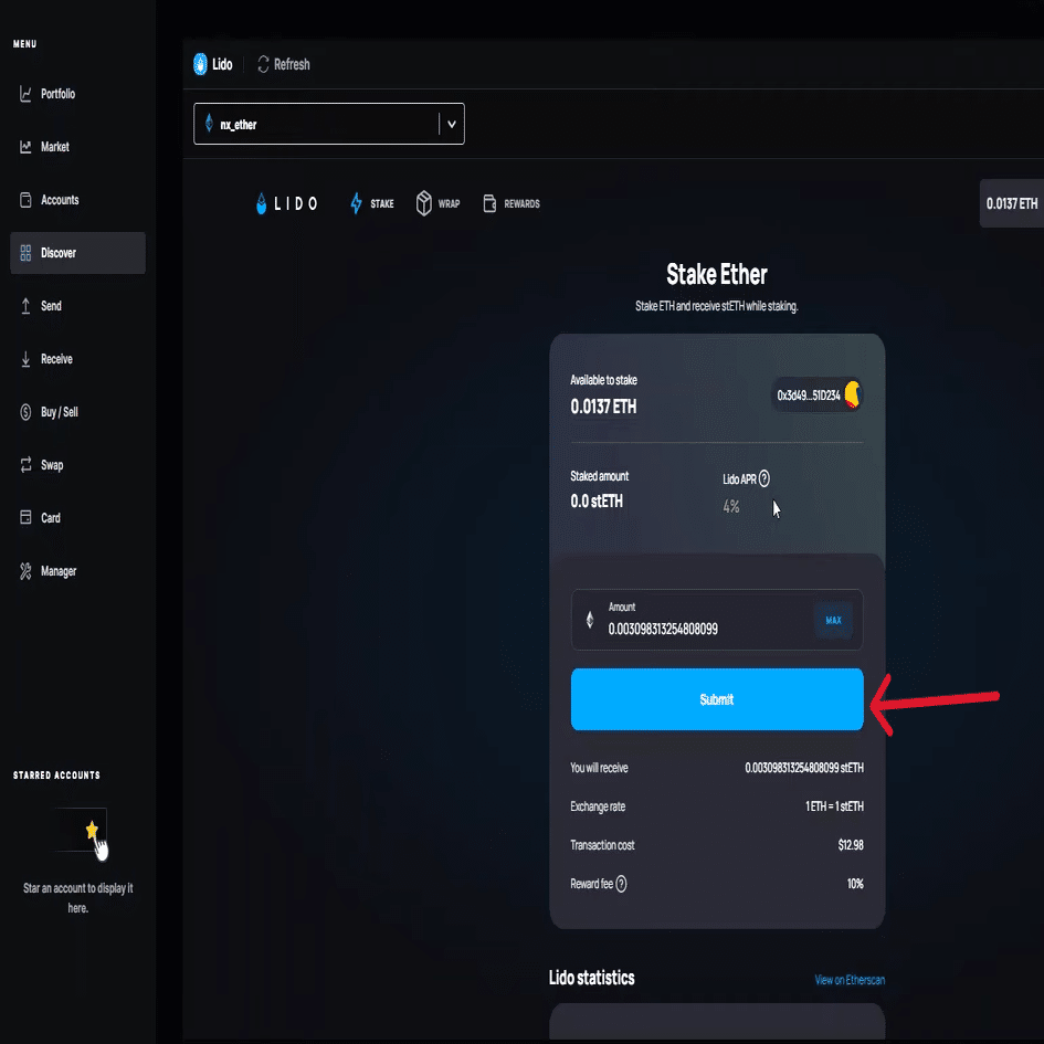 リドとは? Lido はサードパーティのステーキング サービスで、元帳ライブ で ETH をステーキングして stETH 報酬を獲得できます。