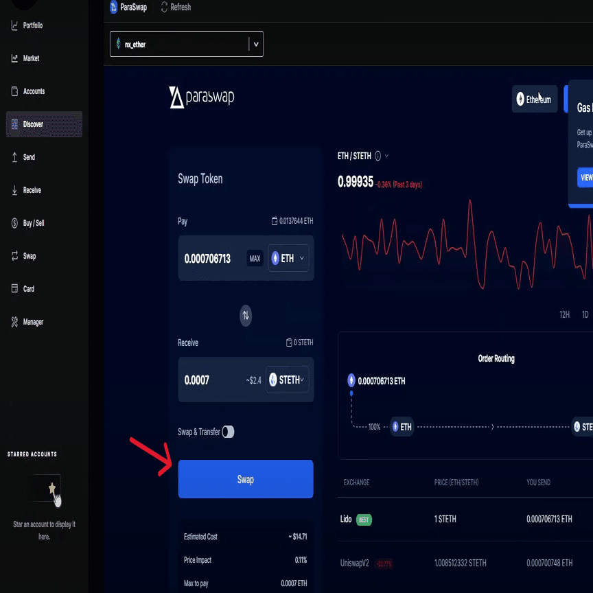 ParaSwapを使用して元帳ライブでイーサリアムをアンステーキングする