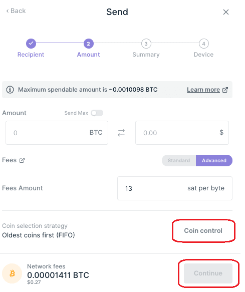 Ledger Liveのコインコントロール機能(コインコントロールは、Bitcoinおよびその派生の高度な機能です)を使用して、UTXOトークンを管理し、トランザクションに含める特定のUTXOを選択します。.