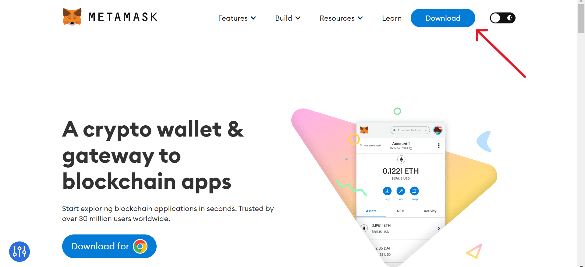 コンピュータのブラウザにメタマスク拡張機能をダウンロードしてインストールします。