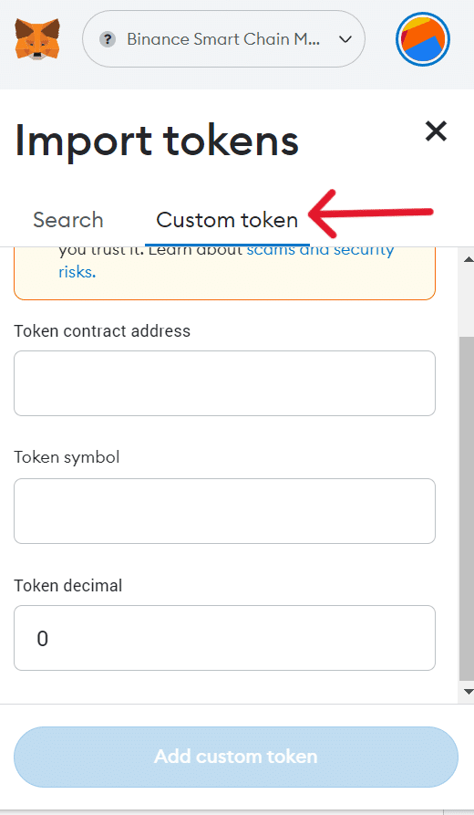 コインが表示されない場合は、契約アドレスを使用してメタマスクのカスタムトークンとしてクリプトを追加する必要があります。メタマスクの画面でインポートトークンをクリックし、その詳細を追加します。
